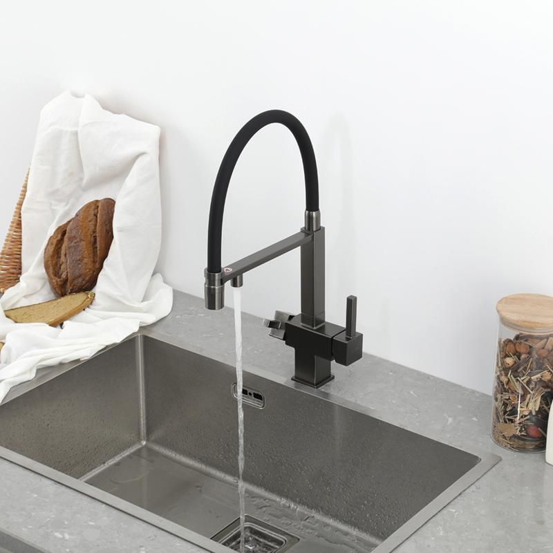 Смеситель для кухни Gappo G4395-59 с подключением фильтра питьевой воды и гибким изливом оружейная сталь/чёрный