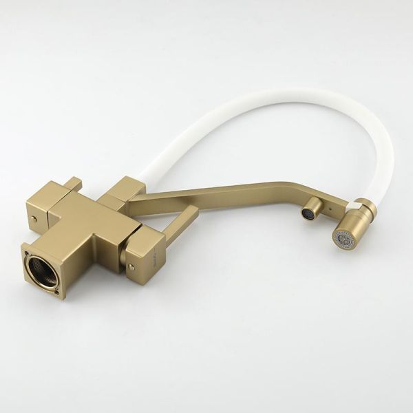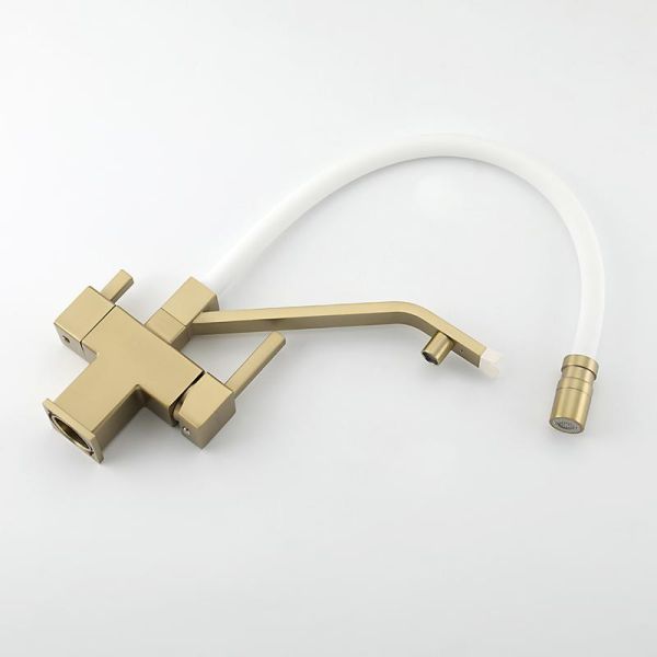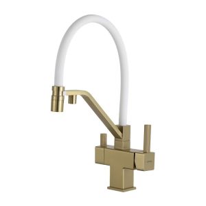 Смеситель для кухни Gappo G4395-63 с подключением фильтра питьевой воды и гибким изливом золото/белый купить