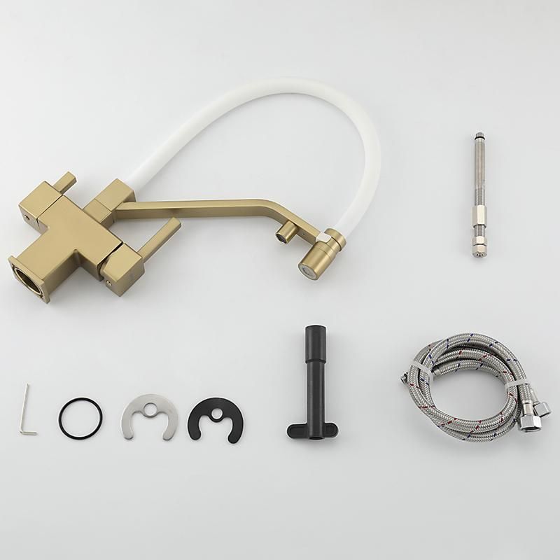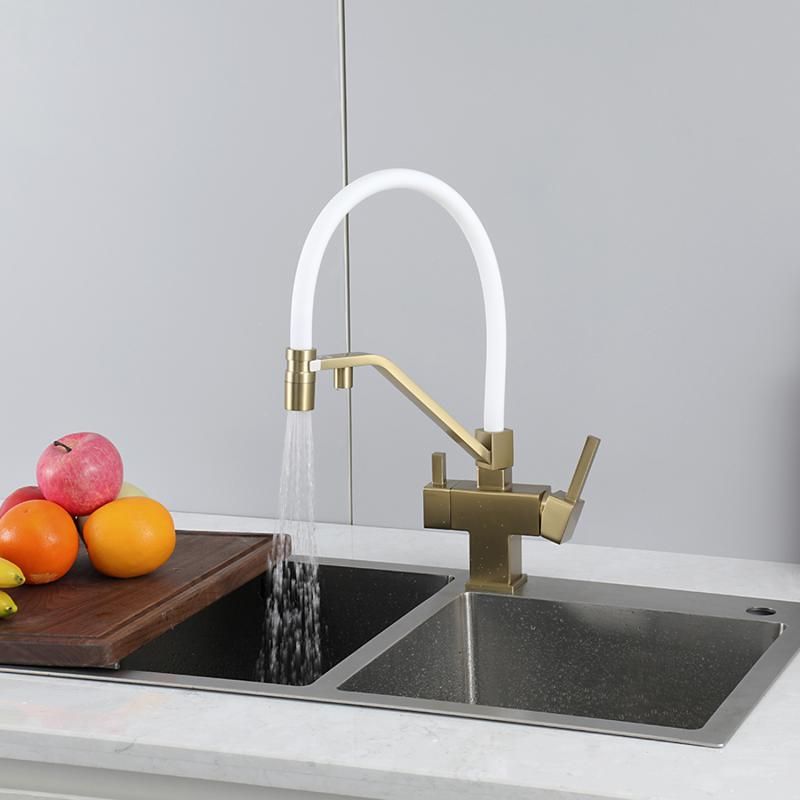 Смеситель для кухни Gappo G4395-63 с подключением фильтра питьевой воды и гибким изливом золото/белый