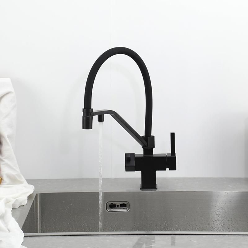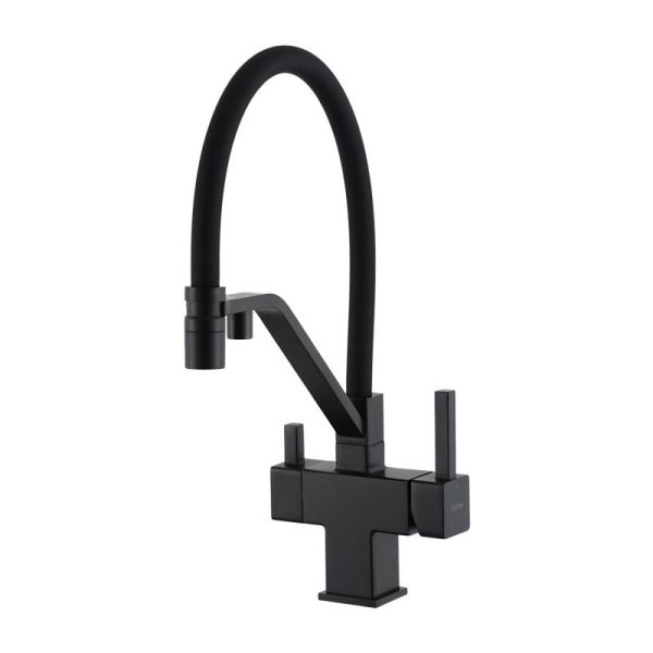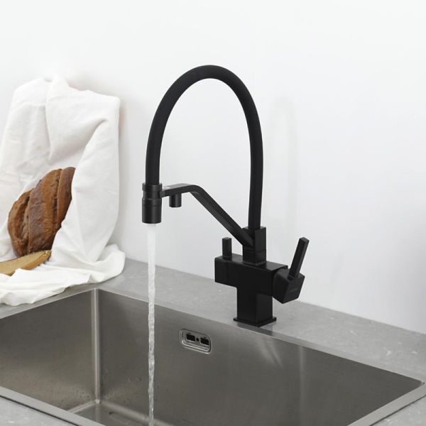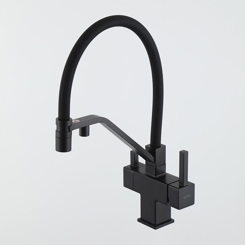Смеситель для кухни Gappo G4395-66 с подключением фильтра питьевой воды и гибким изливом чёрный купить