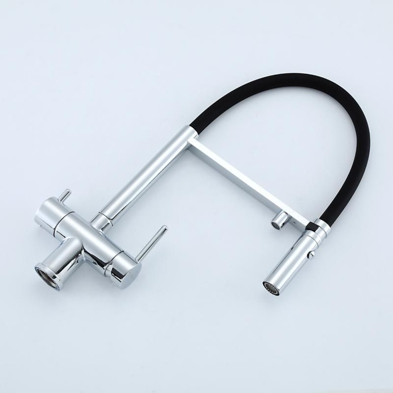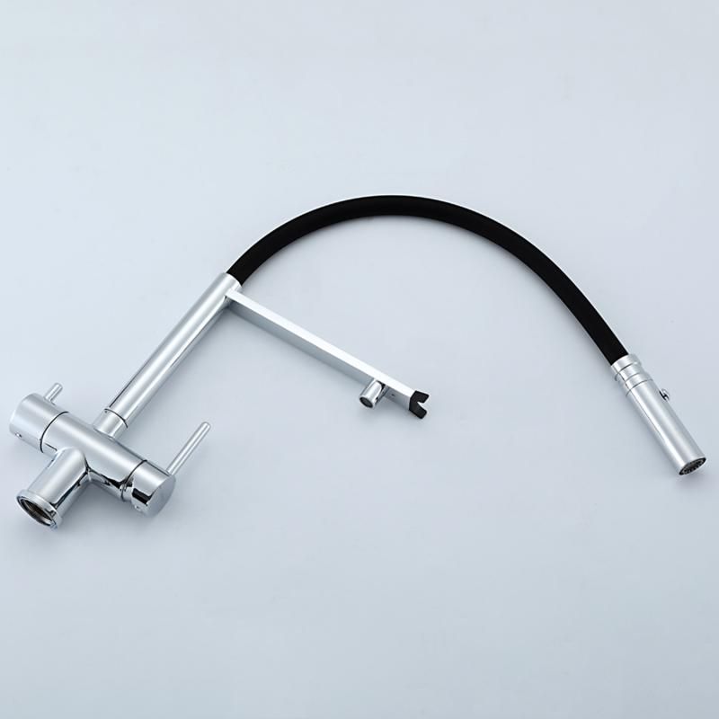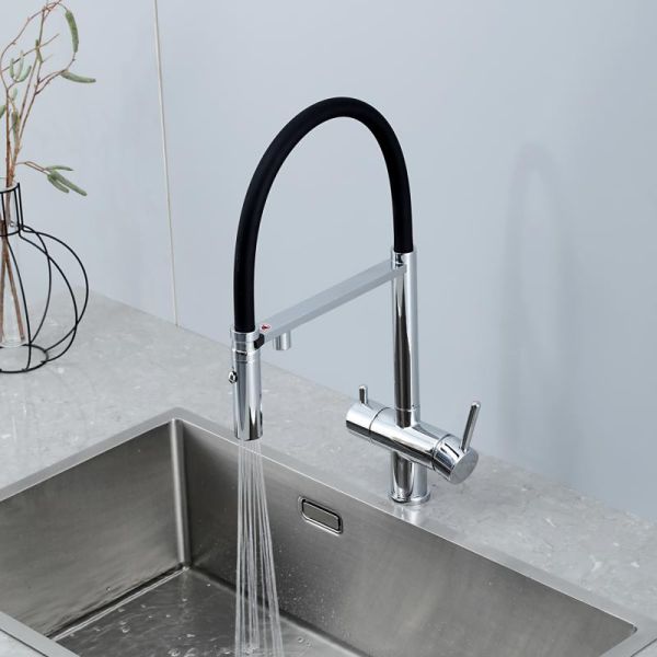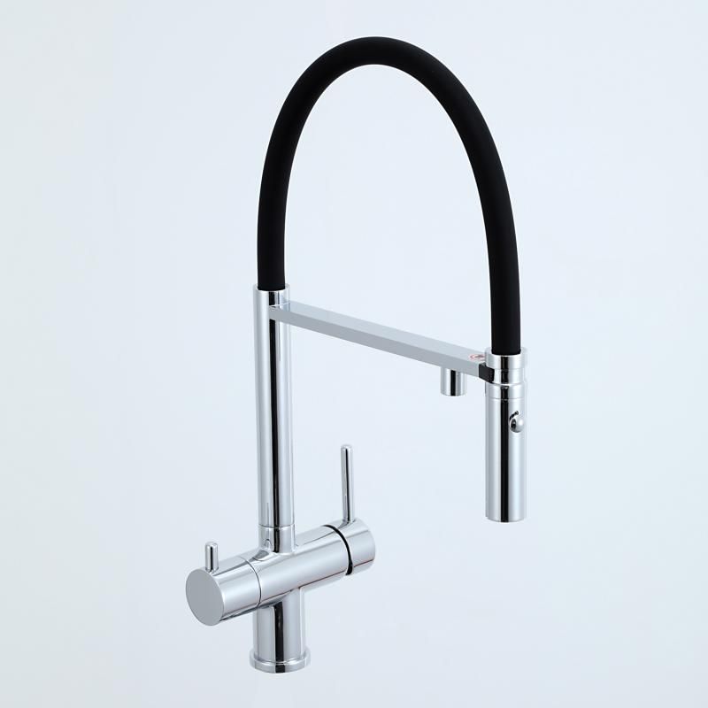 Смеситель для кухни Gappo G4397-80 с подключением фильтра питьевой воды и гибким изливом хром/чёрный
