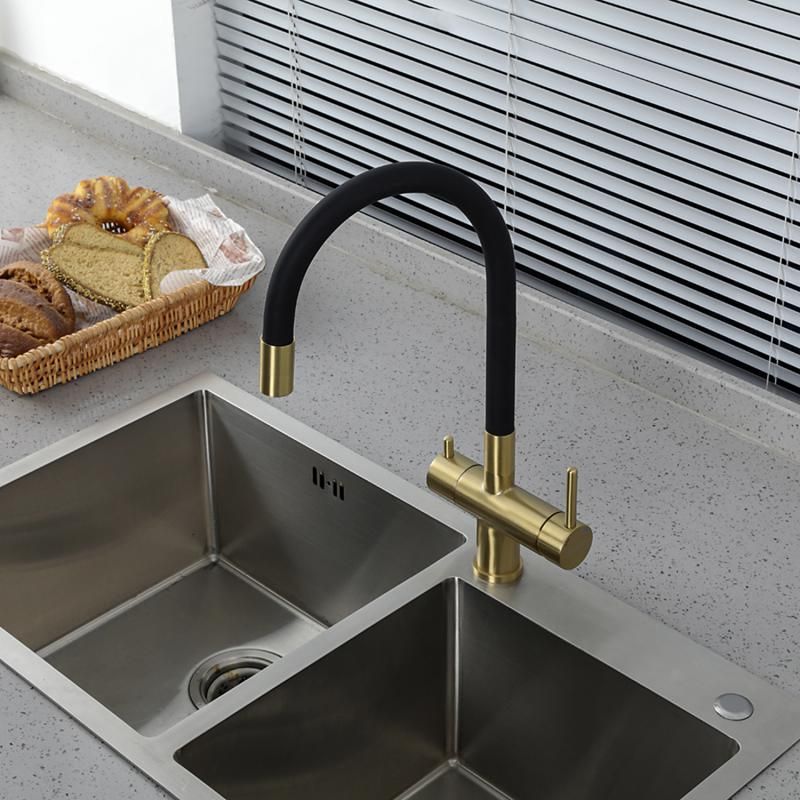 Смеситель для кухни Gappo G4398-33 под фильтр с гибким изливом чёрный/золото купить