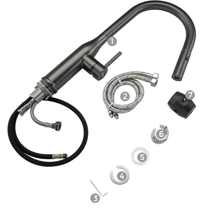 Смеситель для кухни Gappo G4398-41 с выдвижной лейкой оружейная сталь