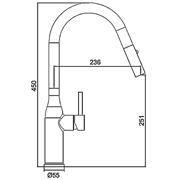 - высота смесителя: 450 мм