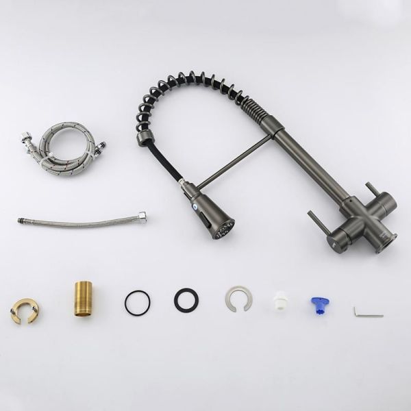 Смеситель для кухни Gappo G4398-69 с гибким выдвижным изливом и подключением фильтра питьевой воды оружейная сталь