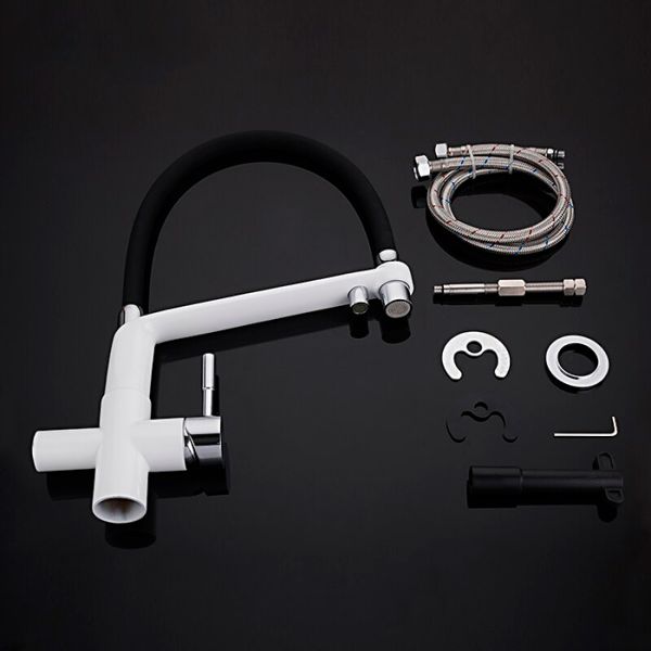 - Излив: поворотный, силиконовый гибкий, цвет - черный / белый