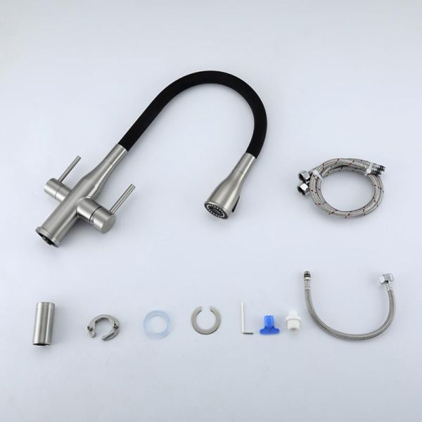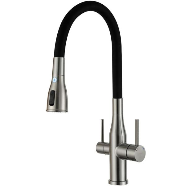 Смеситель для кухни Gappo G4399-65 с гибким изливом и подключением фильтра питьевой воды сатин