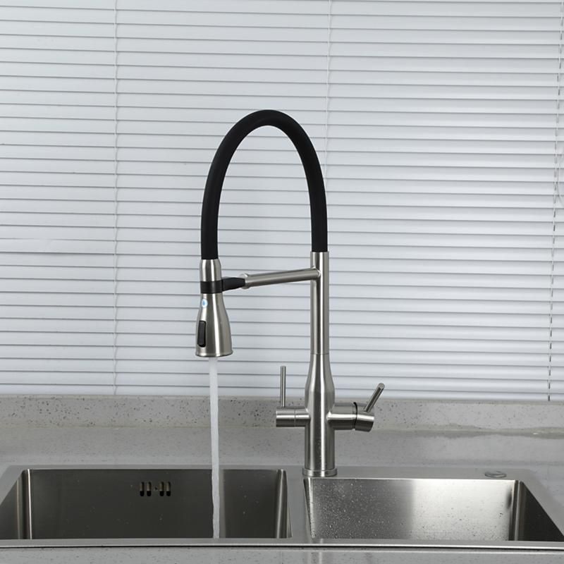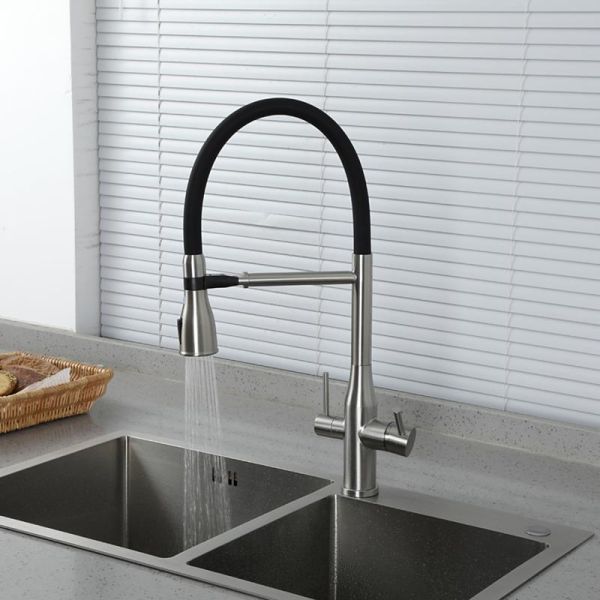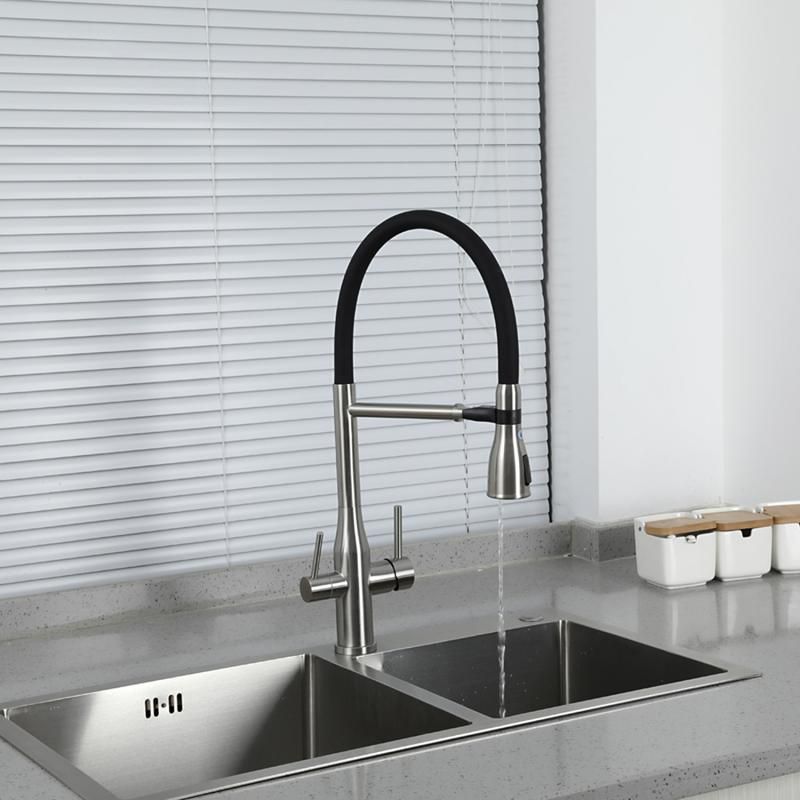 Смеситель для кухни Gappo G4399-75 с гибким изливом и подключением фильтра питьевой воды сатин/чёрный купить