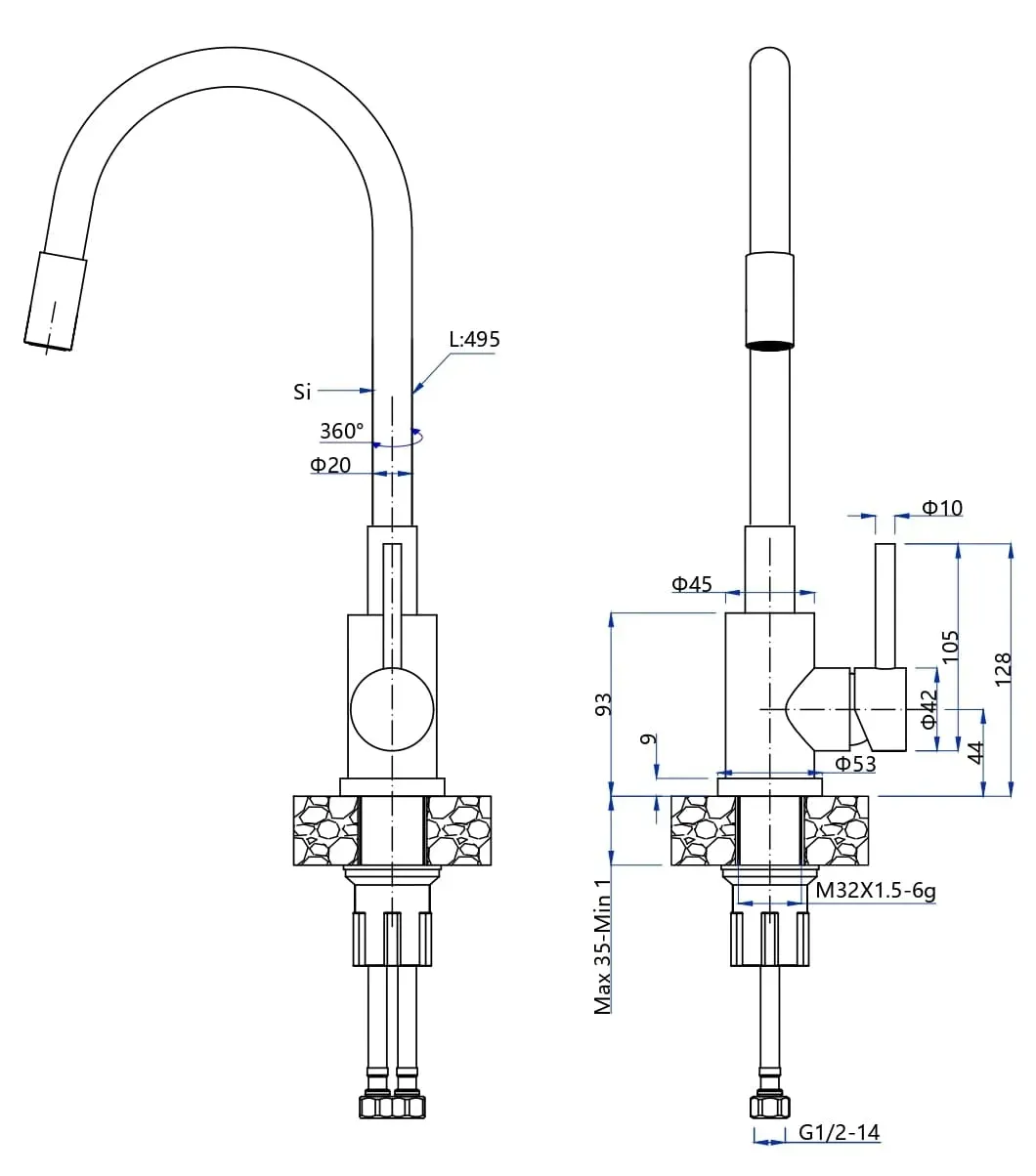 Гибкий излив:нет