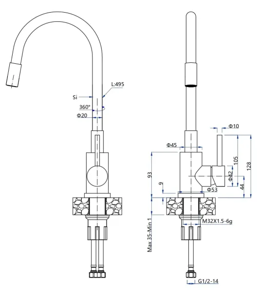 Высота смесителя:60