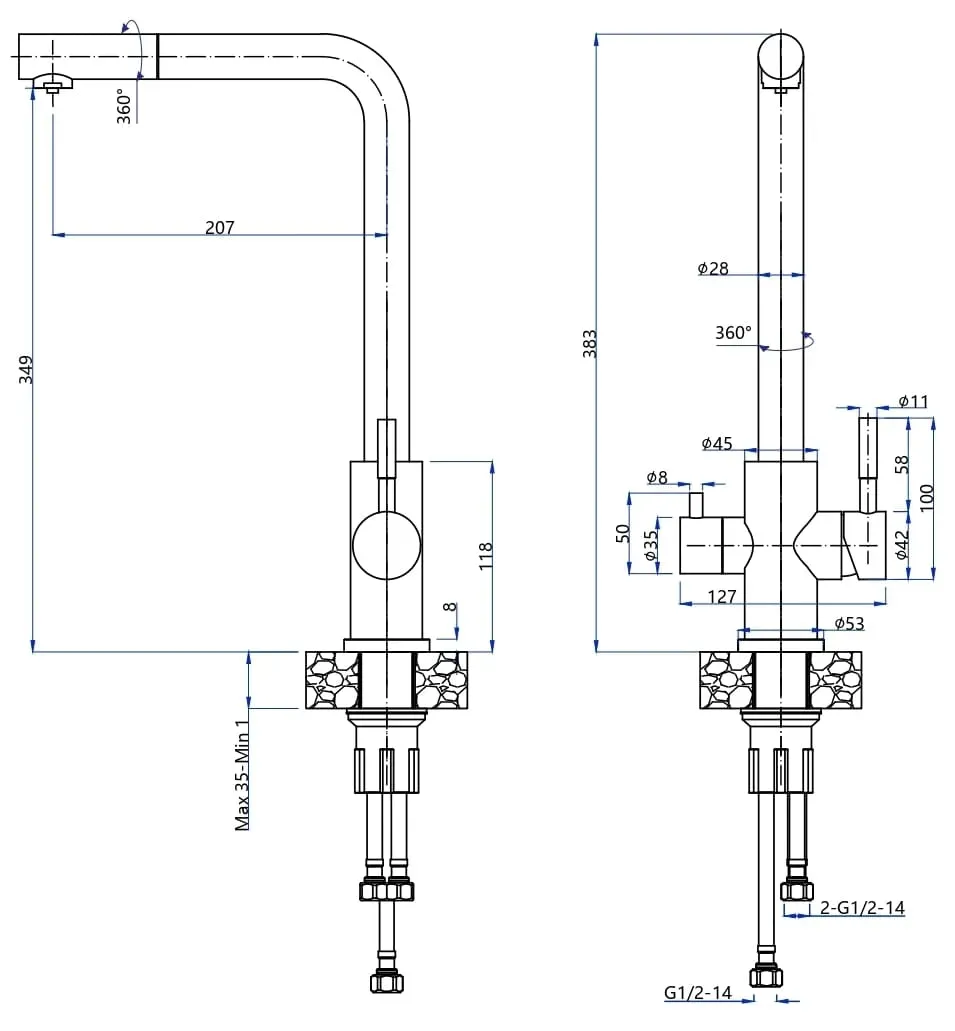 Смеситель для кухни GranFest URBAN Z-5421 темно-серый