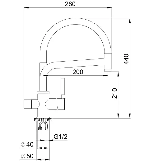 Высота смесителя:44