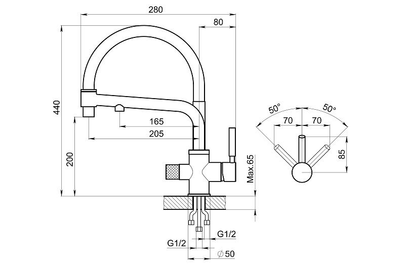 Высота смесителя:44