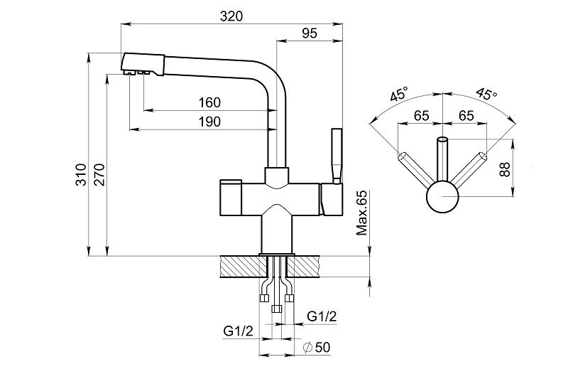 Высота смесителя:31