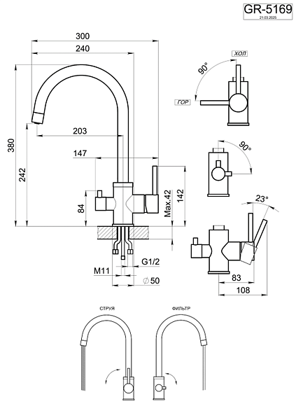 Смеситель для кухни Granula 5169, НЕРЖ нерж