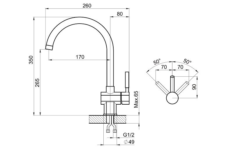 Высота смесителя:35