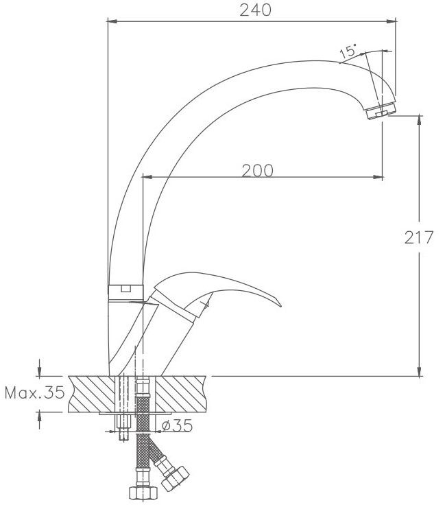 Смеситель для кухни бренда Haiba.Изготовлен из латуни.Картридж 35 мм.Укомплектован аэратором.Гибкая подводка 40 см.С поворотным изливом.