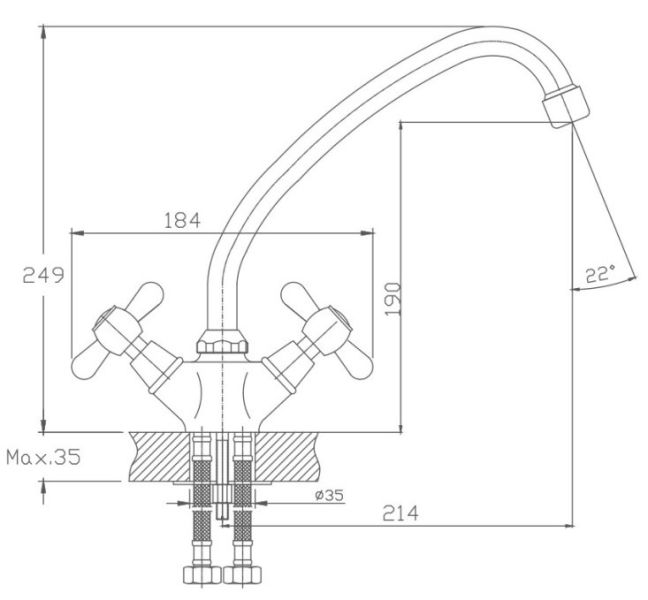Смеситель для кухни бренда Haiba.Изготовлен из латуни.Укомплектован аэратором.Гибкая подводка 40 см.С поворотным изливом.