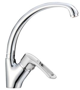 Смеситель для кухни бренда Haiba.Изготовлен из латуни.Картридж 40 мм.Укомплектован аэратором.Гибкая подводка 40 см.С поворотным изливом.