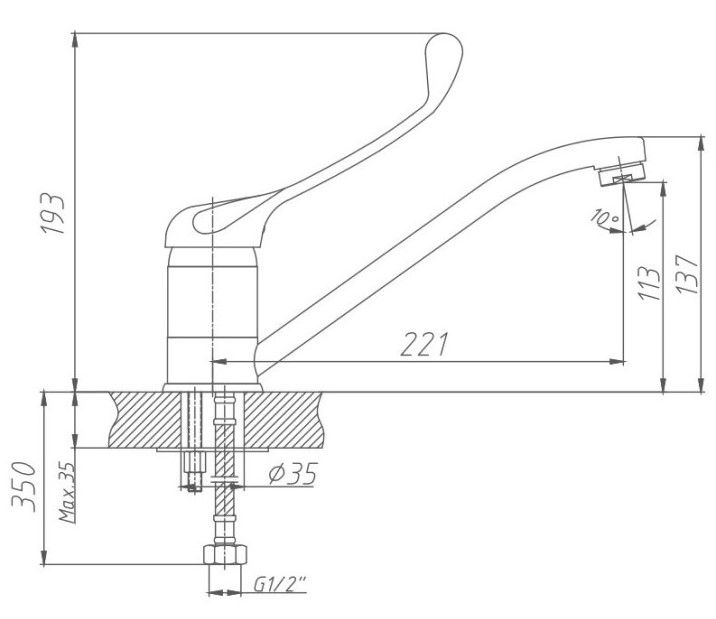 • Высота смесителя: