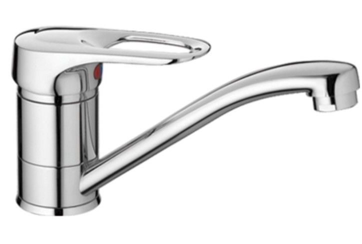 Смеситель для кухни бренда Haiba.Изготовлен из латуни.Картридж 40 мм.Укомплектован аэратором.Гибкая подводка 40 см.С поворотным изливом.