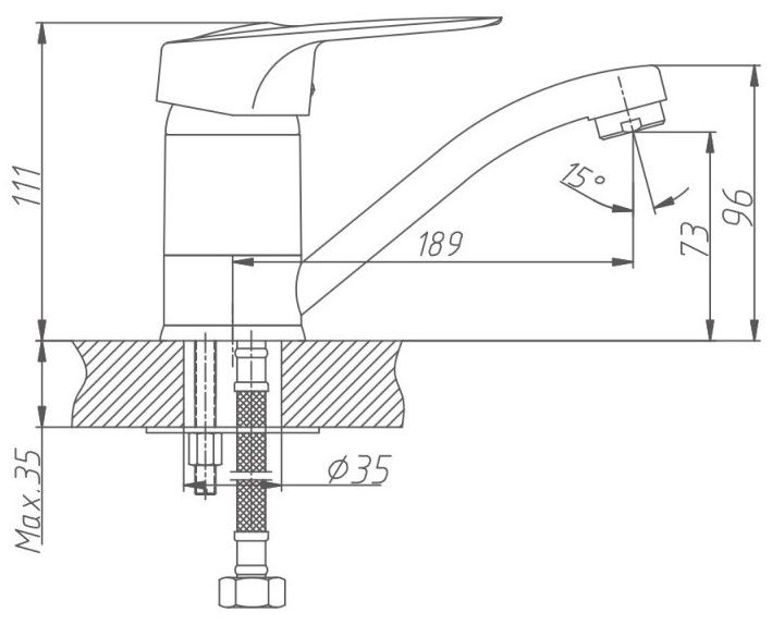 • Высота смесителя: