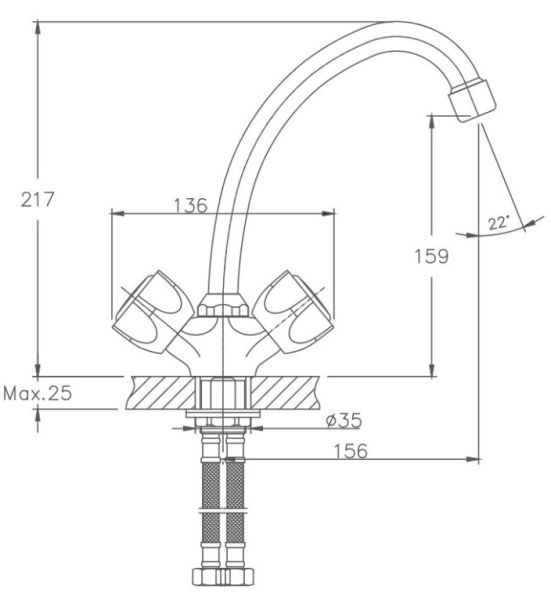 • Высота смесителя: