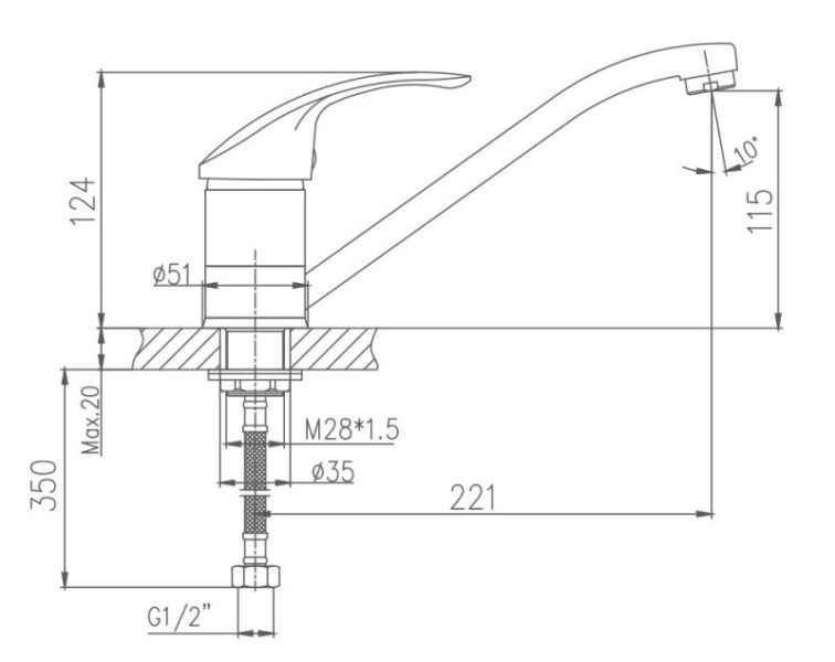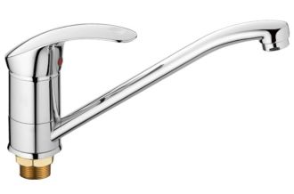 Смеситель для кухни бренда Haiba.Изготовлен из латуни.Картридж 40 мм.Укомплектован аэратором.Гибкая подводка 40 см.С поворотным изливом.