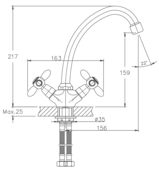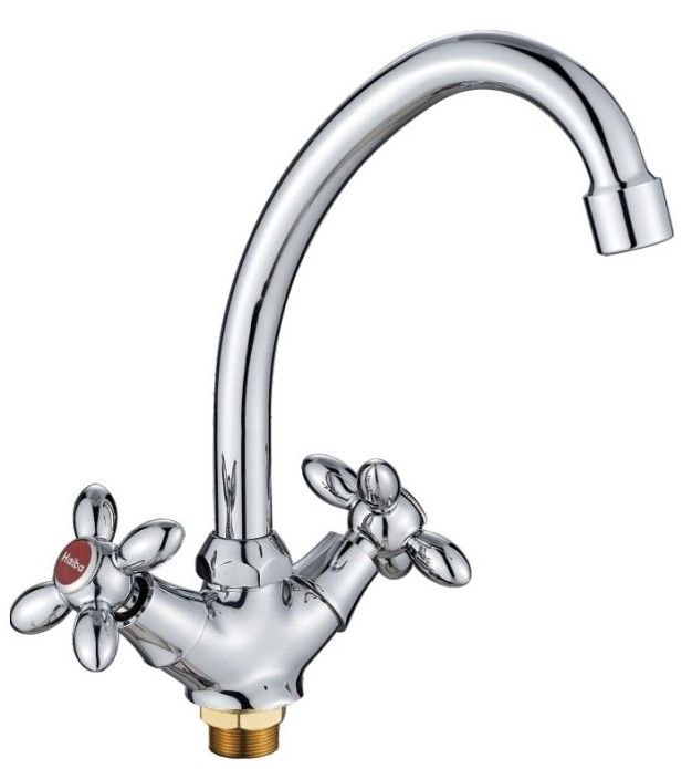 Смеситель для кухни бренда Haiba.Изготовлен из латуни.Укомплектован аэратором.Гибкая подводка 40 см.С поворотным изливом.