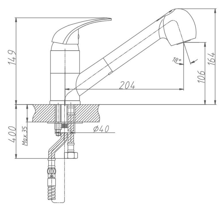 • Высота смесителя: