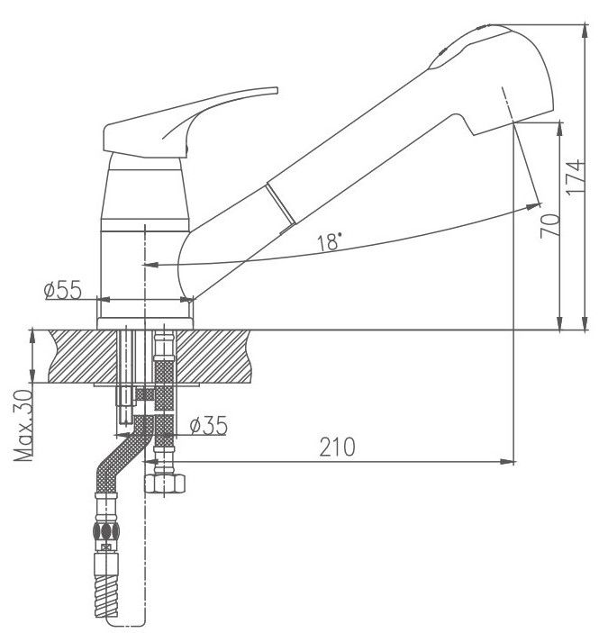 Смеситель для кухни бренда Haiba.Изготовлен из латуни.Картридж 35 мм.Укомплектован аэратором.Гибкая подводка 40 см.С поворотным изливом.