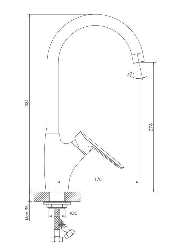 Высота смесителя:38
