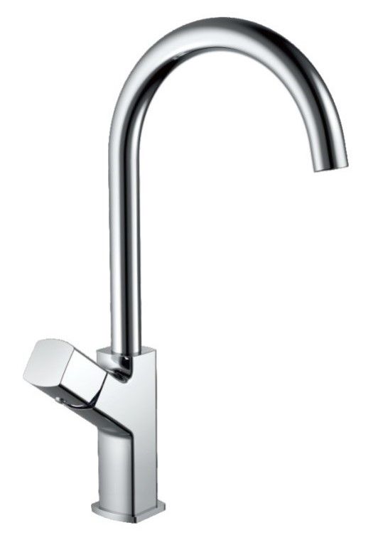 Смеситель для кухни бренда Haiba.Изготовлен из латуни.Картридж 25 мм.Укомплектован аэратором.Гибкая подводка 40 см.С поворотным изливом.
