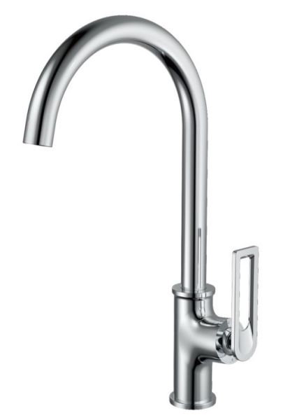 Смеситель для кухни бренда Haiba.Изготовлен из латуни.Картридж 30 мм.Укомплектован аэратором.Гибкая подводка 40 см.С поворотным изливом.