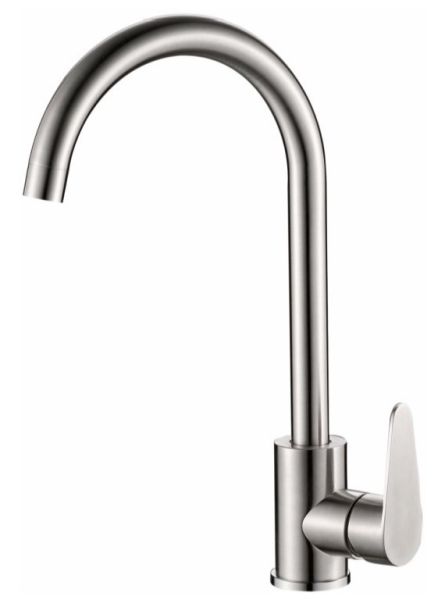 Смеситель для кухни бренда Haiba.Изготовлен из нержавеющей стали.Картридж 35 мм.Укомплектован аэратором.Гибкая подводка 40 см.С поворотным изливом.