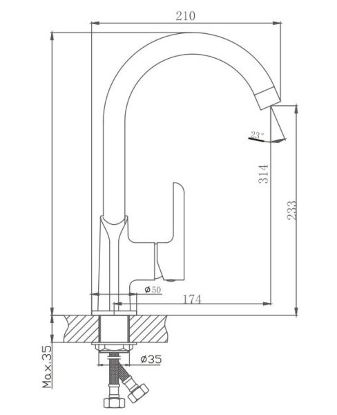 Смеситель для кухни бренда Haiba.Изготовлен из латуни.Картридж 35 мм.Укомплектован аэратором.Гибкая подводка 45 см.С поворотным изливом