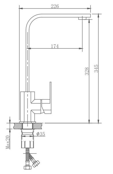 Смеситель для кухни бренда Haiba.Изготовлен из нержавеющей стали.Картридж 35 мм.Укомплектован аэратором.Гибкая подводка 40 см.С поворотным изливом