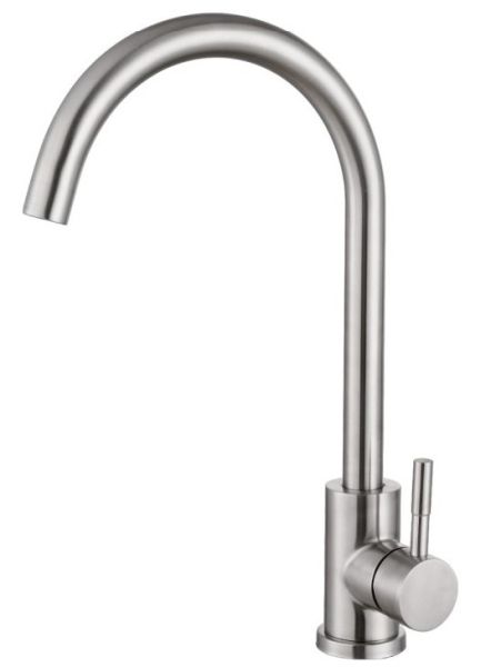Смеситель для кухни бренда Haiba.Изготовлен из нержавеющей стали.Картридж 35 мм.Укомплектован аэратором.Гибкая подводка 40 см.С поворотным изливом