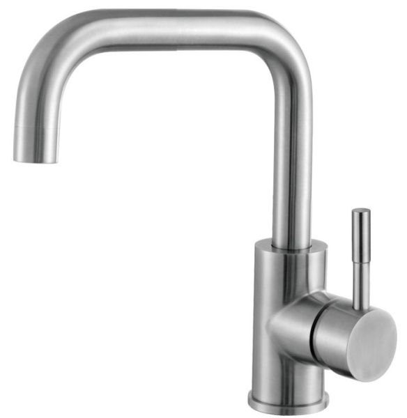 Смеситель для кухни бренда Haiba.Изготовлен из нержавеющей стали.Картридж 35 мм.Укомплектован аэратором.Гибкая подводка 40 см.С поворотным изливом.