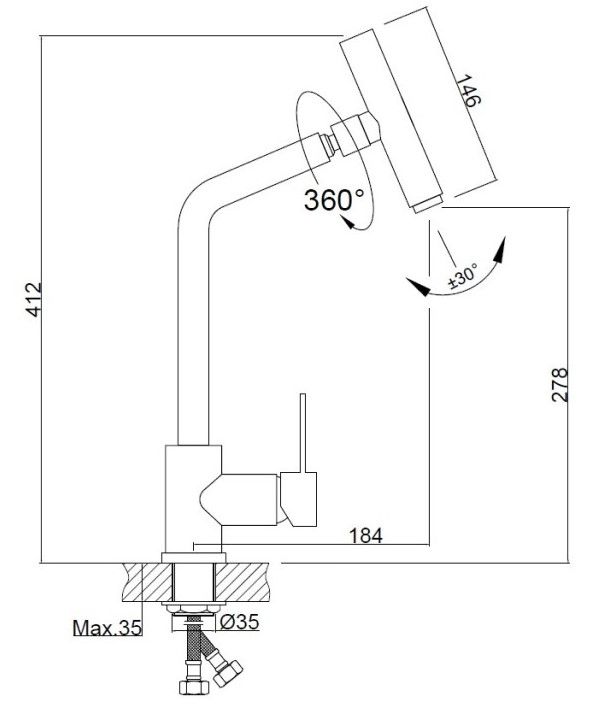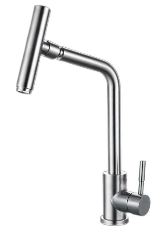 Смеситель для кухни бренда Haiba.Изготовлен из нержавеющей стали.Укомплектован аэратором.Гибкая подводка 40 см.С поворотным изливом.