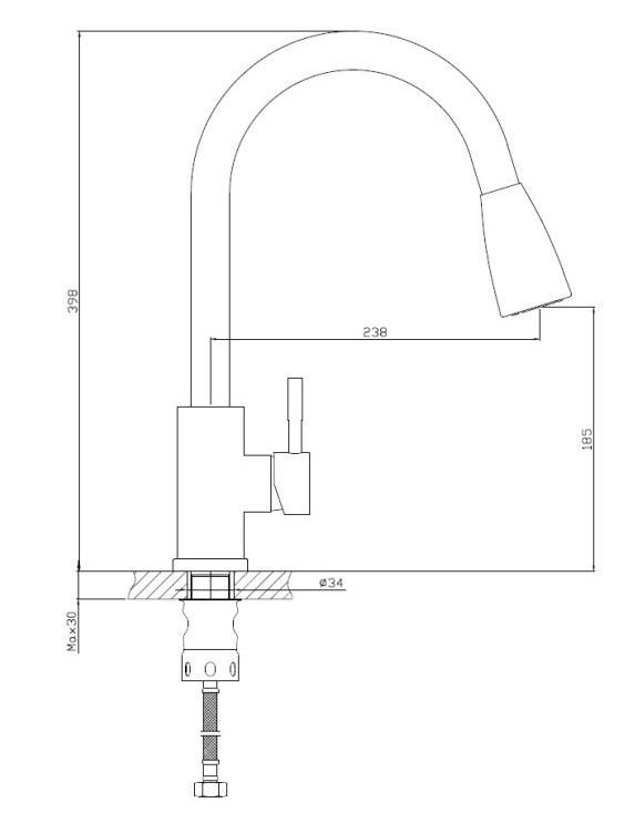 Смеситель для кухни бренда Haiba.Изготовлен из нержавеющей стали.Укомплектован аэратором.Гибкая подводка 40 см.С поворотным изливом.