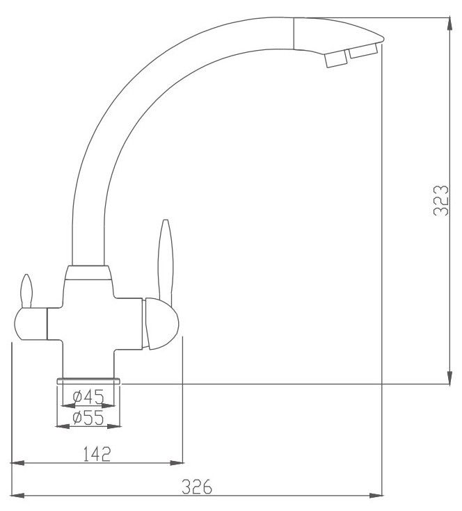 • Высота смесителя: