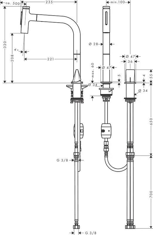 Длина излива, см: 23.5