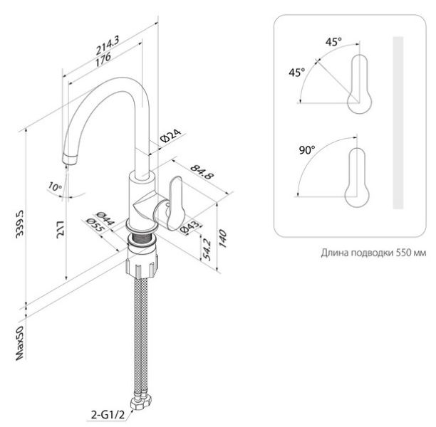Высота смесителя:34
