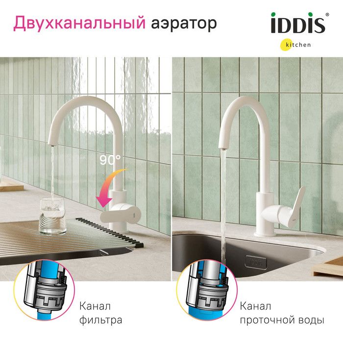 Смеситель для кухни IDDIS Cuba CUBWTFJi05 с каналом для фильтрованной воды белый матовый купить