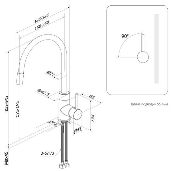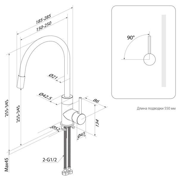 Выдвижной излив:нет