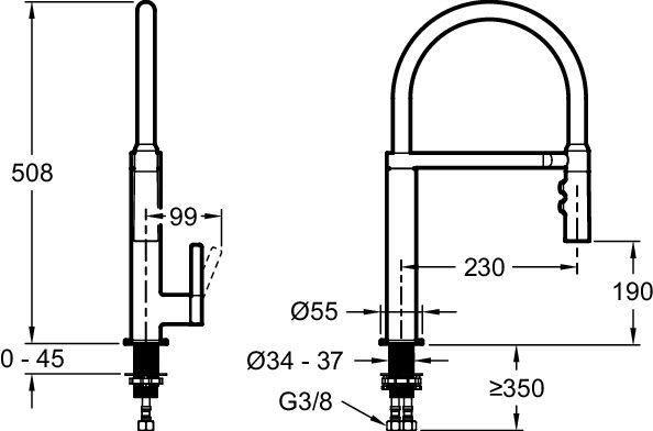 Выдвижной излив:нет