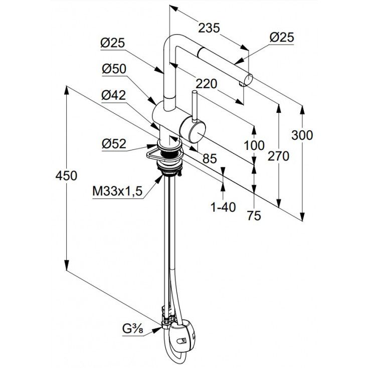 - выдвижной поворотный излив (220°)