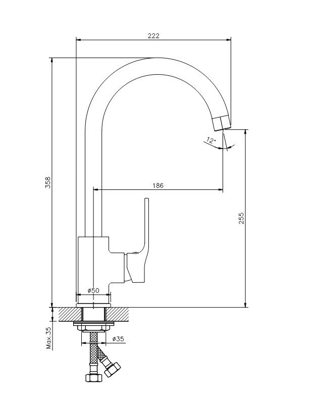 • Высота смесителя: