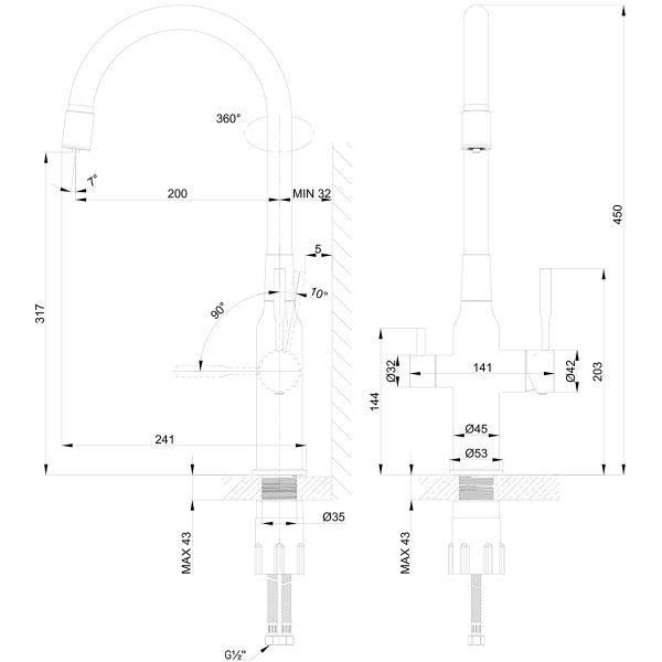 • Для крана с питьевой водой: кран-букса с керамическими пластинами (угол поворота – 90°)